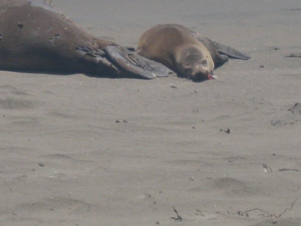 Friends of the Elephant Seals docent, Christel Chesney worked the Piedras Blancas bluffs yesterday, and posted this report on her Facebook Page: “When I reported for duty today I was told to be on the lookout for a young (150 pound) elephant seal with “something red” hanging from his mouth. I was there for about 30 minutes when this little e-seal swam to shore. It had a very large hook, and red lure with the line still attached in its mouth.Three gals from Marin County rescue climbed down from the bluffs for the rescue. Unfortunately, the seal was faster than Lisa and swam out into the ocean. When the gulls saw the fishing lure in the e-seal’s mouth, they started attacking the e-seal. Hopefully he will show up tomorrow on the beach and another rescue will be tried. He is starving to death because he cannot eat.”