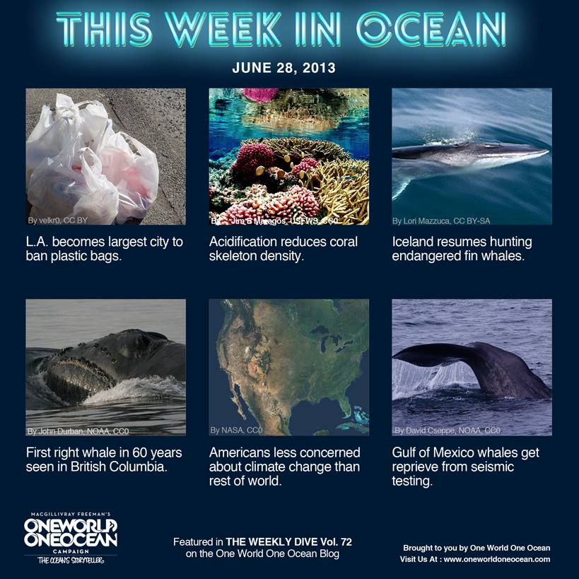 Stories from Los Angeles Times, CBC News, Pew Environment Group, Bloomberg Businessweek, LiveScience, and Science Daily.