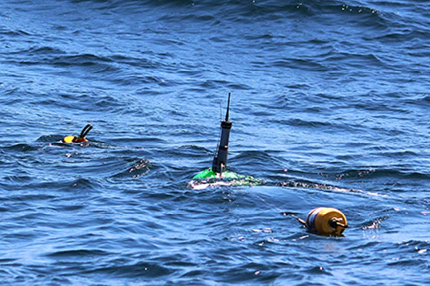 Photo to the right is our existing telemetry buoy (green buoy with antennae) that was attached to line with the crab pot buoy floats that was entangled on the humpback whale on April 27, 2014.