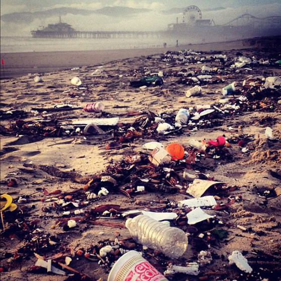 Marine debris along the Santa Monica coastline in Southern California after the “first flush,” the first Fall season rain. (Photo Credit: Heal the Bay)